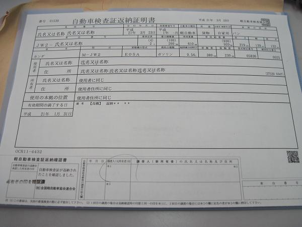 この「自動車検査証返納証明書」は再びナンバープレートを取得する際に必要になります。再発行はしてくれないので大切に保管しておきましょう。
