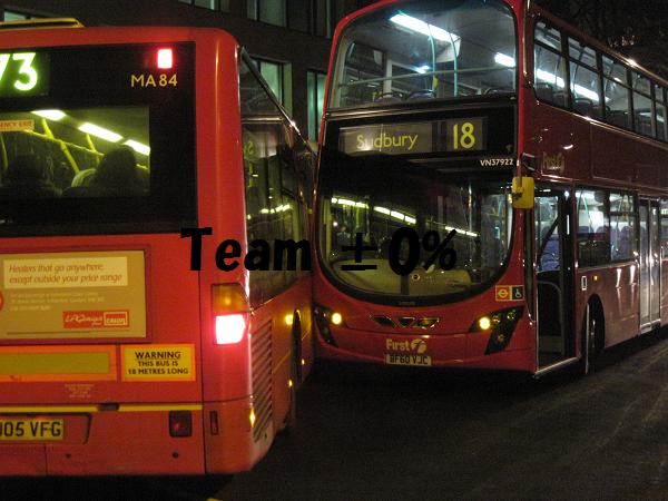 信号待ちでずっと動かないのかと思っていたら前のバスがぶつかっていました。2両連結のバスとダブルデッカーのバスの接触。曲がるときの内輪差を誤った感じです。