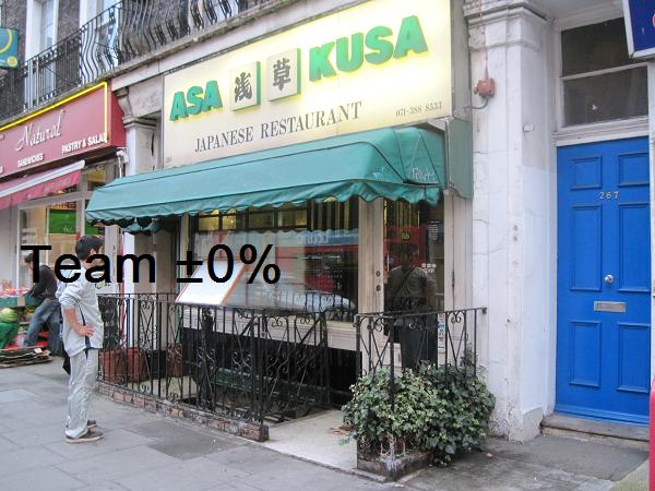 向かった先はMornington crescent stationのそばにある『浅草』。